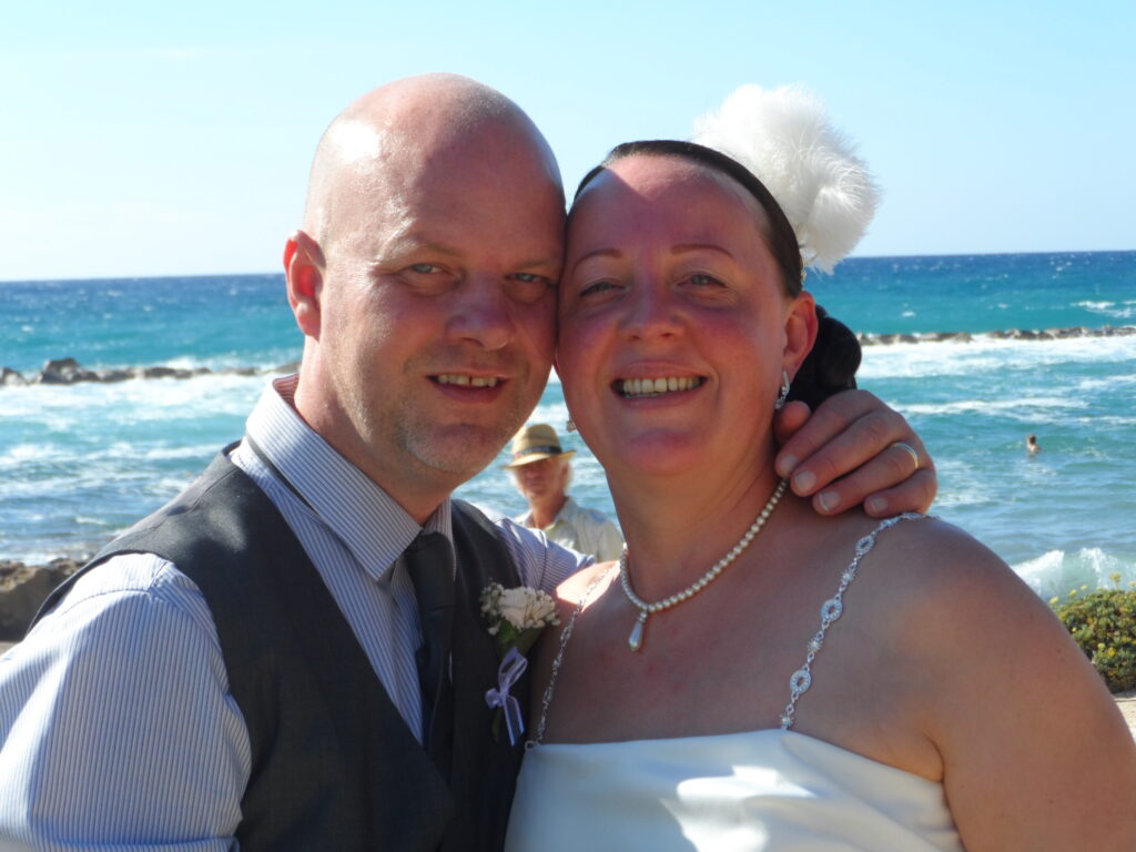 [Image: Andrea and her husband on their Tenerife honeymoon]
