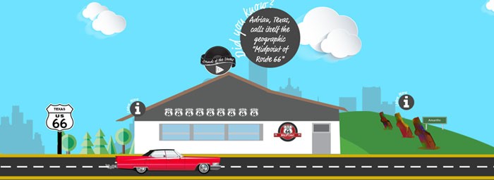 Midpoint Café: The name says it all. The Midpoint Café is a restaurant, souvenir, and antique shop in Adrian, Texas – the geographical midpoint of Route 66, between Los Angeles and Chicago. Famous for its “ugly” pies, the Midpoint Café has a selection of tasty food and is a great place to stop off for a bite to eat and to get your picture taken with the Route 66 midpoint sign across the road.