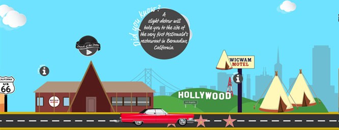A slight detour will take you to the site of the very first McDonald’s restaurant in Bernadino, California.