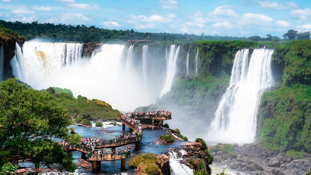 The most dramatic waterfalls in the world must surely be the Iguazu Falls which straddle the border of Brazil and Argentina.