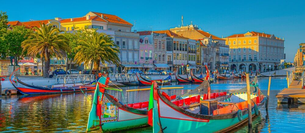 Aveiro: Winding canals, traditional moliceiro boats and Art Nouveau architecture.